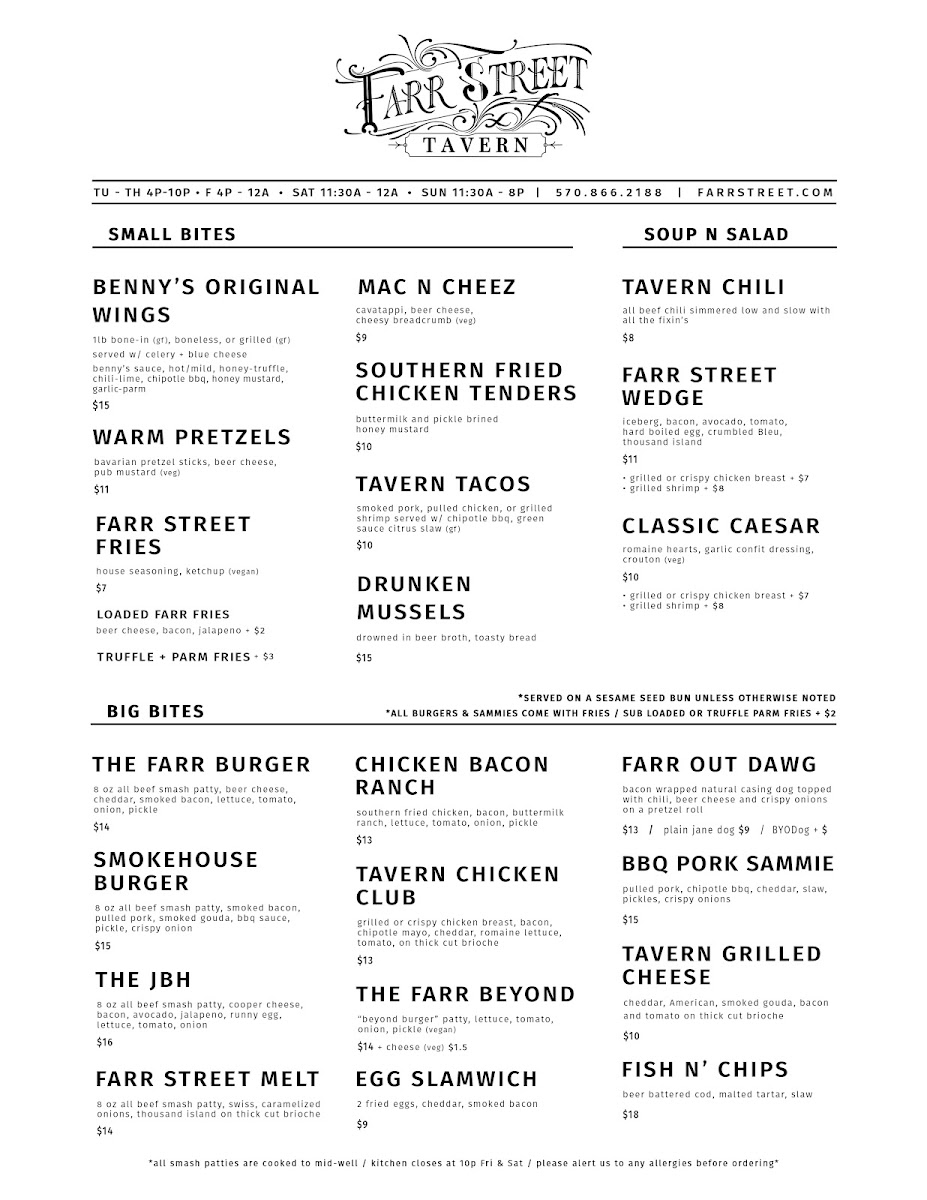 Welcome to Farr Street Tavern, the gem of Scranton located at 1601 Farr St! This vibrant eatery offers a delightful menu that marries classic tavern comfort with a creative twist, ideal for both casual diners and date nights.